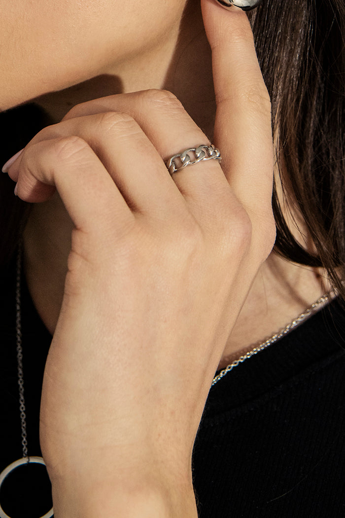 MODDAM - Damen-Kettenring, Edelstahl, silberfarben
